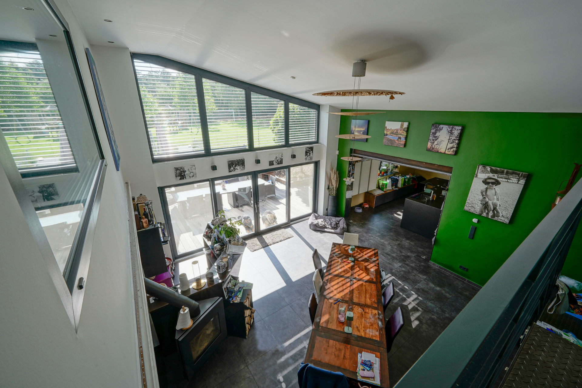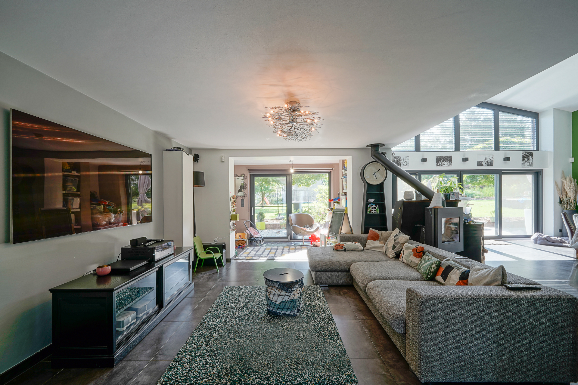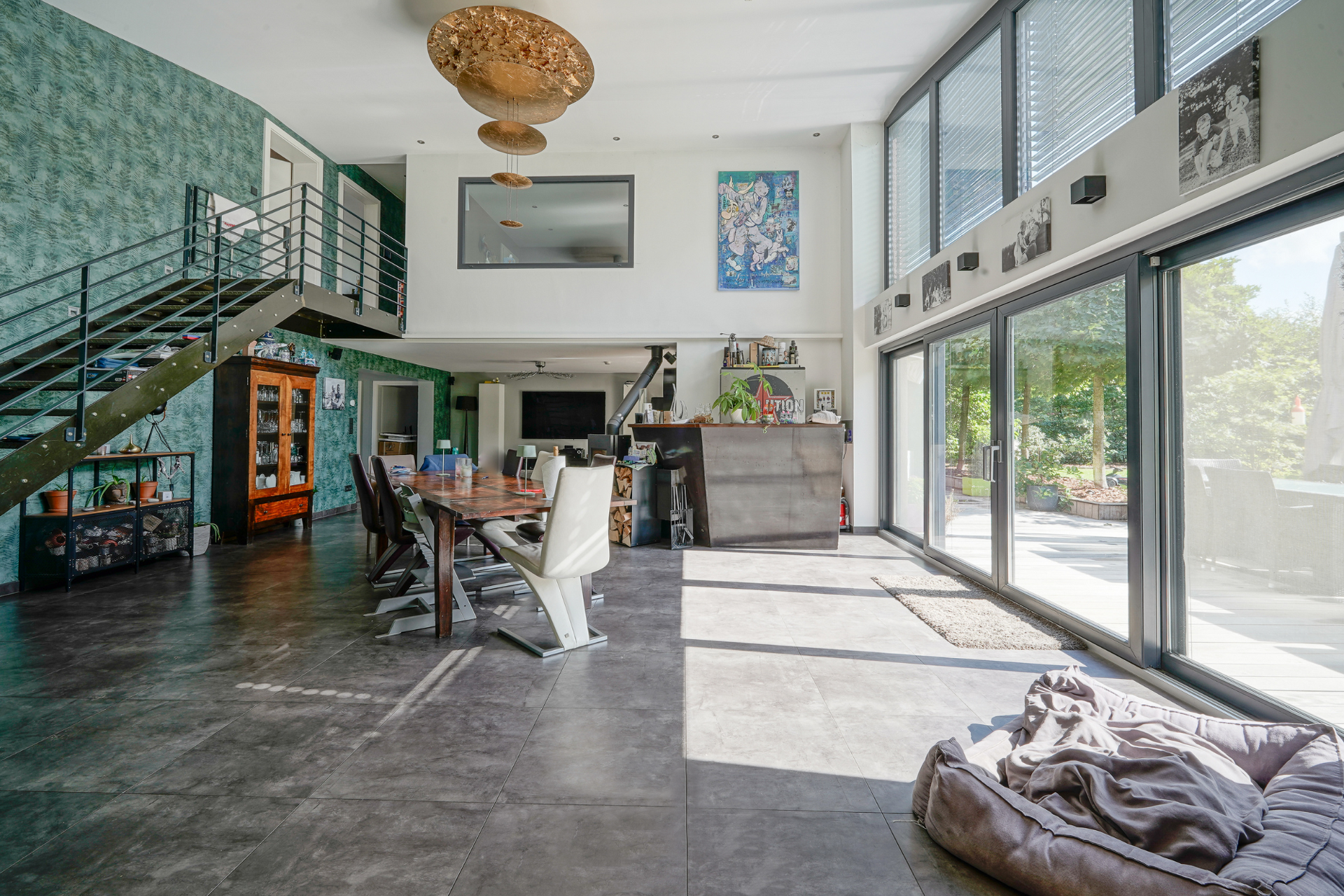 • Vaste salon/salle à manger (± 53 m²) avec cheminée et accès à une terrasse de ± 50 m² et au jardin